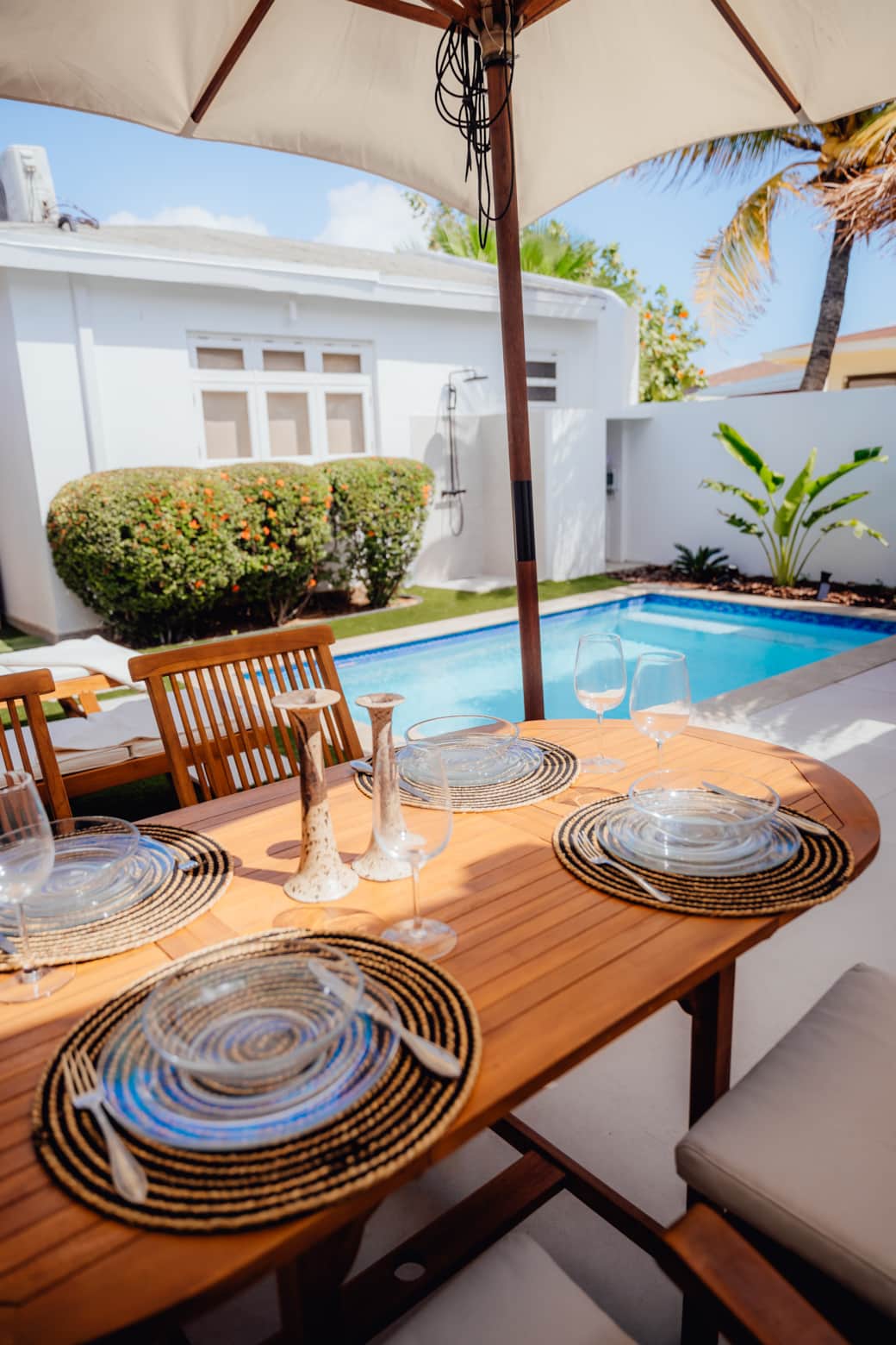 Our villa features three private suites with a total of six bedrooms, six bathrooms and two swimming pools, making it exceptionally flexible for couples, families and groups. Feel at home in paradise!